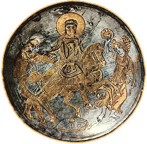 Silver plate showing an image of the Emperor Constantius II. Late 4th century.St. Petersburg, State Hermitage Museum. Inv. No. 1820/79. Byzantine Art in the Collections of Soviet Museums, Aurora Art Publishers, Leningrad 1977, 1985, table 1. © State Hermitage Museum, St. Petersburg |