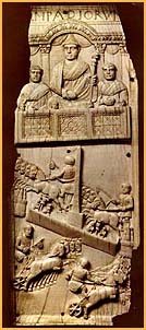 Ivory diptych of the Lampadii family with a scene from the Constantinople hippodrome. Early 5th century. Brescia, Diocesan Museum of Religious Art. Historia tou Hellenikou Ethnous, v. 7, Ekdotike Athenon S.A. Athens 1978, p. 263. © Diocesan Museum of Religious Art, Brescia |