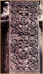 Detail from the richly decorated pillar from the St. Polyeuktos Church, Constantinople, which today stands in front of the Church of Saint Mark, Venice, where it was taken as one of the spoils of the Fourth Crusade. Soprintendenza archeologica per il Veneto. Harrison, M., A Temple For Byzantium: The Discovery and Excavation of Anicia Juliana's Palace-Church in Istanbul, University of Texas Press, Austin, Harvey Miller LTD, London 1989, p. 103, ill. 123. © Ministero per i Beni e le Attivita Culturali |