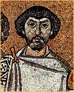 Byzantine court official: detail of a mosaic from the northern wall of the sanctuary of San Vitale, Ravenna. Opera di Religione della Diocesi di Ravenna. Historia tou Hellenikou Ethnous, v. 7, Ekdotike Athenon S.A., Athens 1978, p. 271. © Opera di Religione della Diocesi di Ravenna |