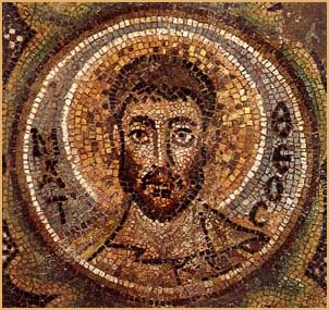 Matthew (the Evangelist): mosaic from the conch of the sanctuary of the Church of Panagia Kanakaria, Lythrangomi, Cyprus, 518-610 AD. Nicosia, Macarius III Foundation Byzantine Museum. Chatzidakis, N., Helleniki Tehni: Byzantina Psifidota, Ekdotike Athenon S.A., Athens 1994, p. 47, ill. 20. © Macarius III Foundation Byzantine Museum, Nicosia |