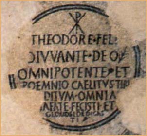 Floor-mosaic from the Cathedral (aula teodoriana) in Aquileia, northeastern Italy, showing a dedicatory inscription bearing the name of the donor, Bishop Theodore, 313-319 AD. Aquileia, Museo Paleochristiano. Crippa, M., Zibawi, M., L' art paleochretien: Des Origines a Byzance, Editions Zodiaque Desclee de Brouwer, Paris 1998, pl. 41. © Ministero Per I Beni E Le Attivita Culturali |