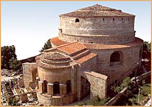 The Church of St. Georgios (Rotunda) in Thessalonike, viewed from the north east. 4th-5th centuries. Thessalonike, 9th Ephorate of Byzantine Antiquities. Ministry of Culture/Archaeological Receipts Fund. Kourkoutidou-Nikolaidou, E., Tourta, A., Peripatoi sti Byzantini Thessalonike, KAPON Editions, Athens 1997, p. 51, ill. 52. © Hellenic Ministry of Culture |