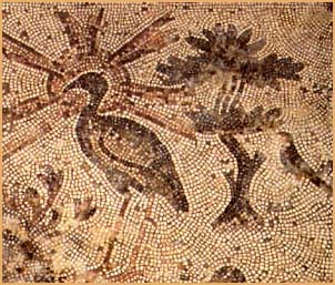Mosaic of a haloed phoenix. Syrie, Musee d' Apamee. Crippa, M., Zibawi, M., L' art paleochretien: Des Origines a Byzance, Editions Zodiaque Desclee de Brouwer, Paris 1998, pl. 99. ©Syrian Arab Republic, Ministry of Culture, Directorate General of Antiquities and Museums |