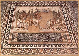 Mosaic from the northern pastophory of Basilica I, Nikopolis, 525-550 AD. Ioannina, 8th Ephorate of Byzantine Antiquities. Ministry of Culture/Archaeological Receipts Fund. Sakellariou, M., Epeiros 4000 Chronia Hellenikis Historias kai Politismou, Ekdotike Athenon SA., Athens 1997, p. 176, ill. 137. © Hellenic Ministry of Culture |