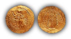 The end of 11th century witnessed the full collapse of the Byzantine monetary system, which had remained stable since the 3d century AD. The two gold coins, the tetarteron and the histamenon had suffered a series of debasements until in 1081 their gold content was so low they could barely justify their names. At the same time, the minting of silver coins had almost stopped, while the copper folles were struck sparingly.In 1092 he Emperor Alexios I Komnenos took drastic measures and reformed the Byzantine monetary system for the first time. He issued a completely new series of scyphate (cupped shaped) coins: the golden hyperpyron and the aspron trachy (white, uneven) made of electron (1/3 of a hyperpyron in value), and the aspron trachy made of billon (1/48 of a hyperpyron). The histamenon, the tetarteron and the miliaresion of the previous period continued to circulate. The tetarteron, however, was changed into a small, thick copper coin in order to create a smaller denomination coin. Like the folles of former times, it was in turn to disappear: the latter tetartera, extremely small in size, circulated in the days of Manuel Komnenos (1143-1180). The new system ran through the 12th century, with one addition, that of the half tetarteron in the reign of John II (1118-43). The two aspra trachea, however, were significantly debased. The trachy made of billon was reduced by the end of the century to the 1/184! of the value of the hyperpyron (thanks to a progressive reduction in the silver content of its alloy which at the beginning was at least 60%), while that made of electrum was debased in the reign of Isaac II (1185-95) to such a degree that it did not survived through to the Late Byzantine era. |
