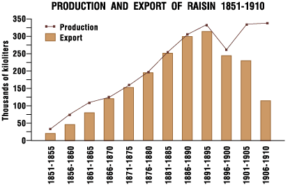 In mid-19th century currants were one of the main agricultural products and major exports of Greece. In the Northern and North Eastern Peloponnese currant cultivation assumed the dimensions of a monoculture. The factors that contributed to this development were the favourable climatic conditions of the area, smallholding, which was established by the agrarian reforms of 1871, and the increased demand for currants abroad, which afforded significant returns for producers and those involved in their trade. The lion's share of the currant production was absorbed by England. Greek currant exports soared after a chance event, the phylloxera epidemic that attacked French vines in the 1870s. The recovery of French vines reduced the absorption of Greek production abroad and contributed to the currant crisis at the end of the century.