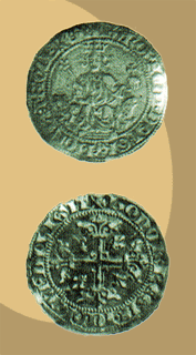Although available information about economy during the Catalan occupation is scant, a finding of approximately 500 coins discovered near Thebes suggests the close economic and commercial relations between the Catalans of Athens and the kingdom of Sicily. On the picture, one of the silver coins.