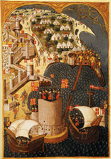 After many failed attempts of the Turks to conquer Rhodes, in 1522 Suleiman the Magnificent conquered the city after it had besieged it, thus putting an end to the rule of the Knights Hospitallers. On the picture, miniature representing the siege of Rhodes (1480) by the Turks. 15th century.