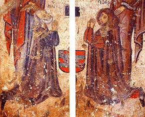 (πιθανόν πατέρας και γιος), με το οικόσημό τους. Προέρχονται από την τοιχογραφία